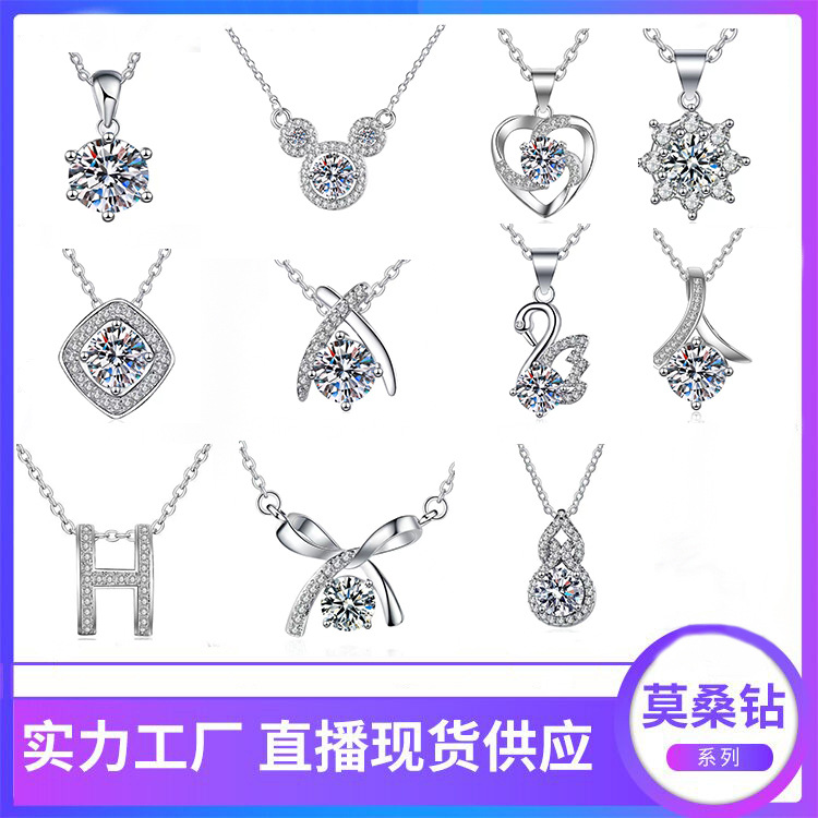 Live Broadcast Popular Moissanite Necklace for Women, Accessible Luxury Ins Style Women's Zircon Pendant, Clavicle Chain Gift, One Piece Drop Shipping