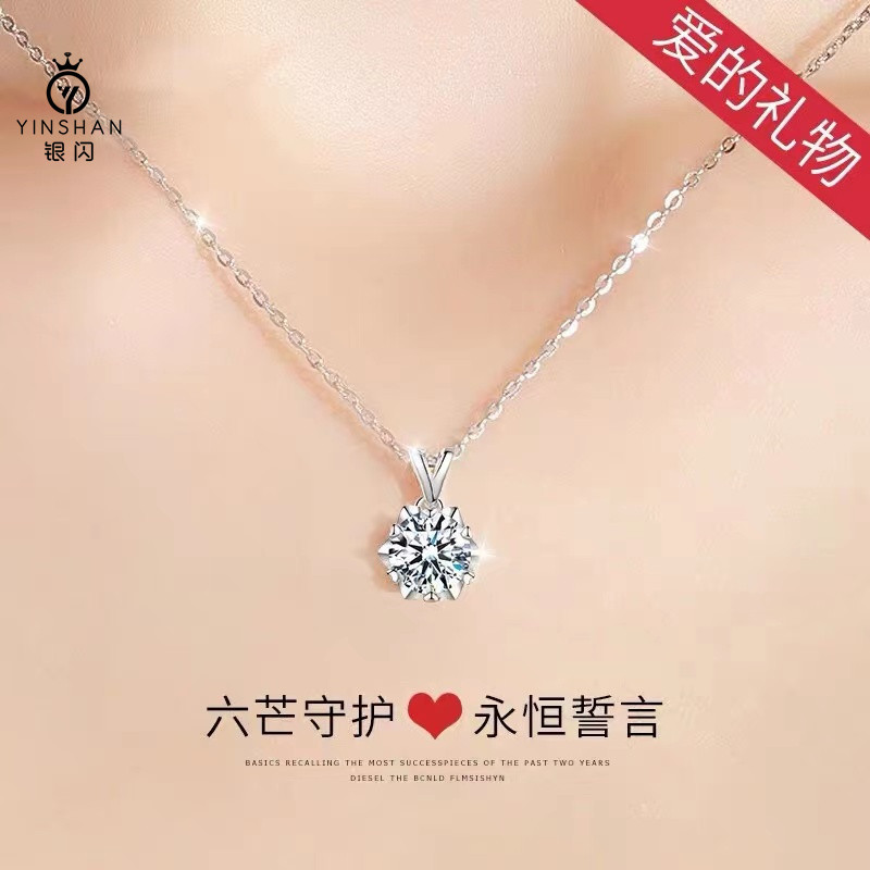 Silver Flash s999 Group Silver Necklace Women's One 2 karat Mosan Diamond Six-pointed Star Necklace Goddess Clavicle Chain Fashion Jewelry