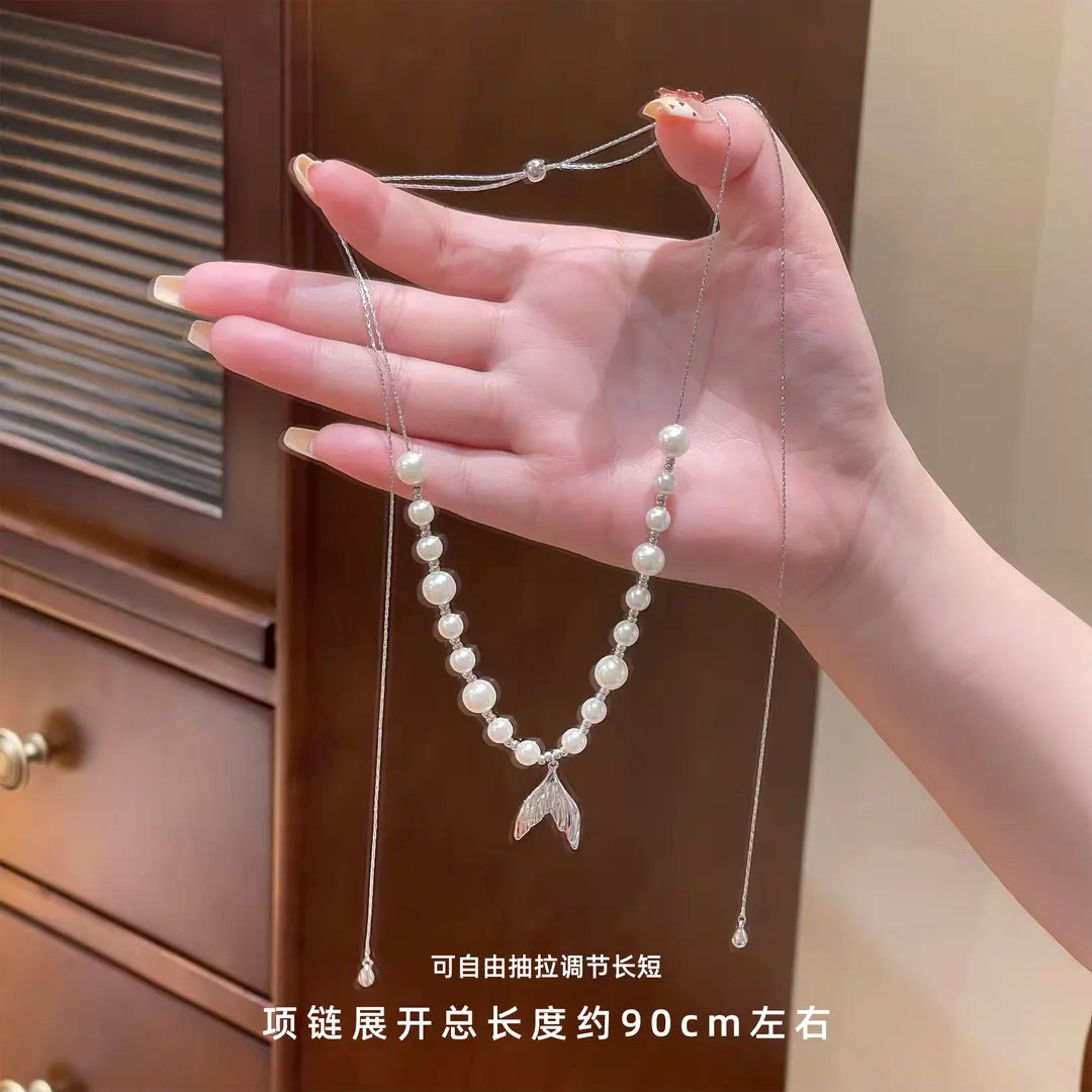 2025 New Long Fishtail Pearl Necklace Light Luxury High-end All-match Clavicle Chain High Cold Goddess Style Neck Chain