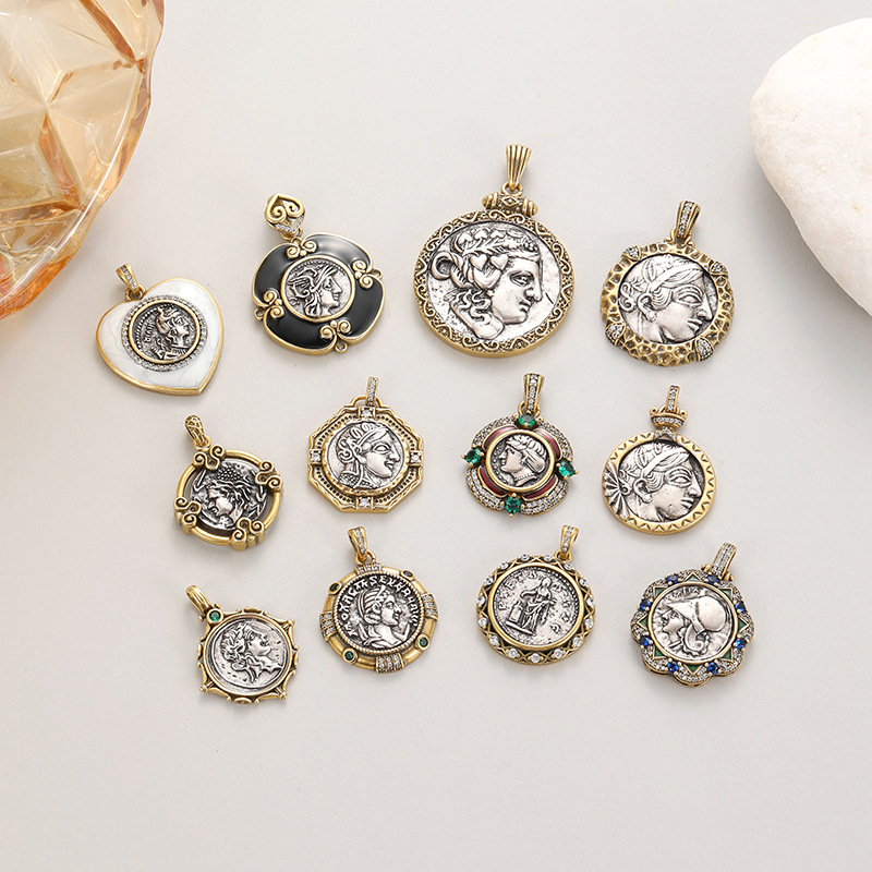 European and American Retro Bronze Coin Figure Pendant DIY Jewelry Single Pendant Accessories Necklace Bracelet Handmade Pendant Accessories