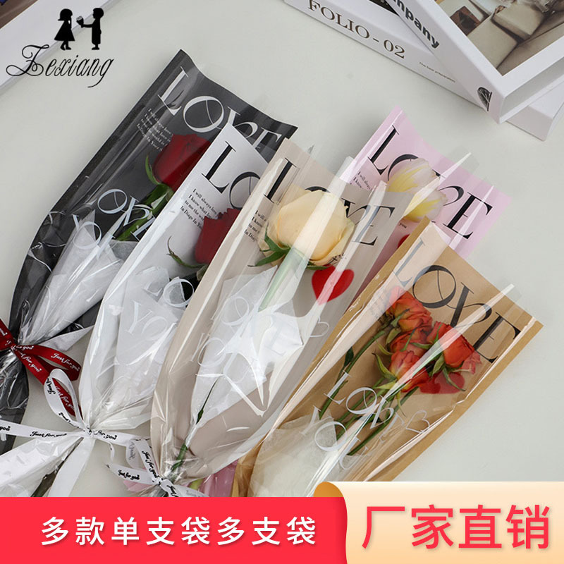 Single Bouquet Wrapping Paper, Flower Shop Holiday Multi-Bouquet Bag, Opp Transparent Flower Wrapping Bag, Single Rose Flower Single Bag