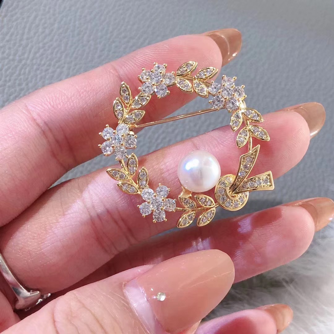 DIY Pearl Accessories New Seiko Micro Inlaid Brilliant Wreath Beeswax Brooch Elegant Fashion Goddess Corsage Empty Holder