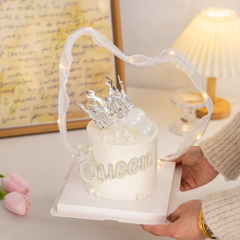 Beautiful 38Th Goddess Day Crown Cake Decoration Ornaments White Ribbon with Lights Queen's Day Women's Day Baking Accessories