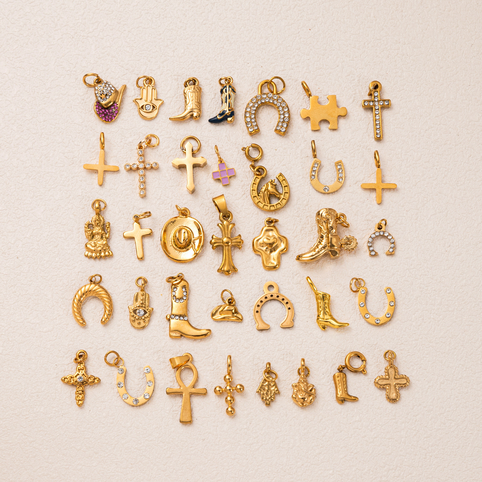 European and American Cross-Border New Stainless Steel Western Cowboy Pendant DIY Accessories Furnace Vacuum Electroplating 18K Gold Color-Preserving Women