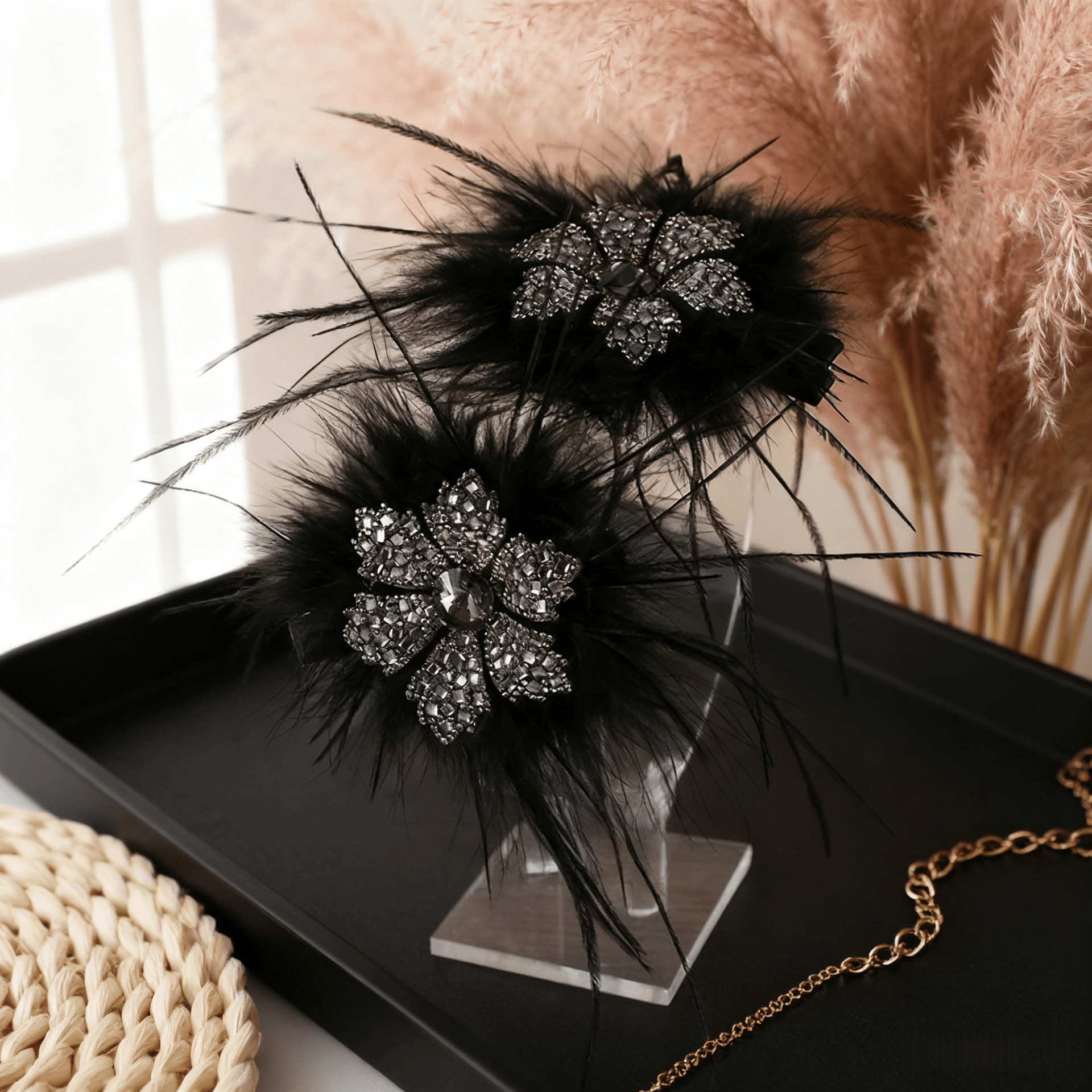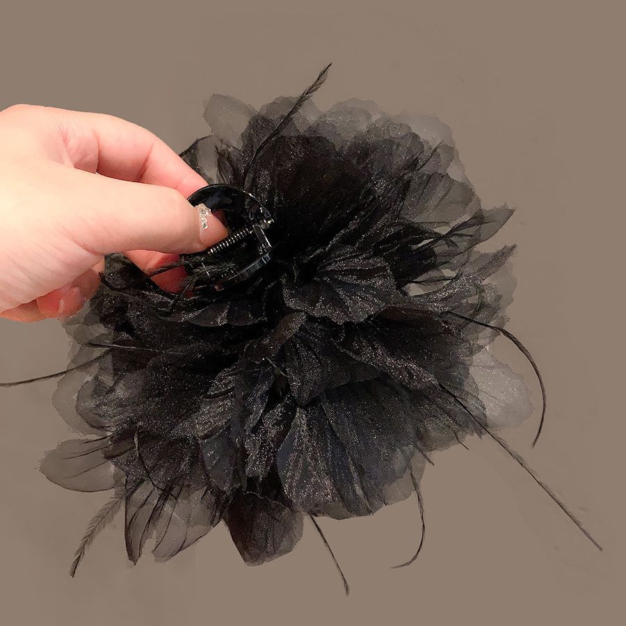 French super fairy feather clip large Internet celebrity same style hairpin female temperament back head shark clip high-grade headdress flower