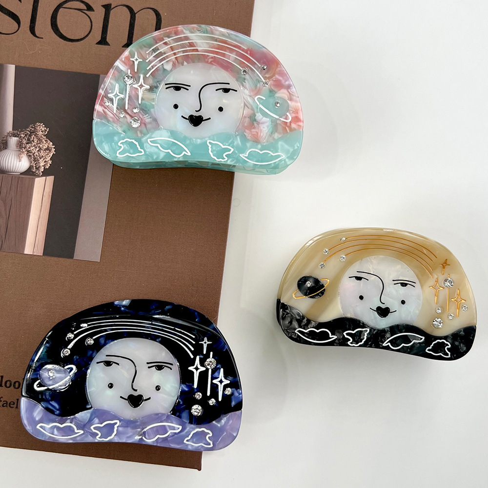 New Cross-Border Hot-Selling Diamond Star Sun Goddess Acetate Hairpin Hair Grab Fashion Shark Clip Hair Accessory