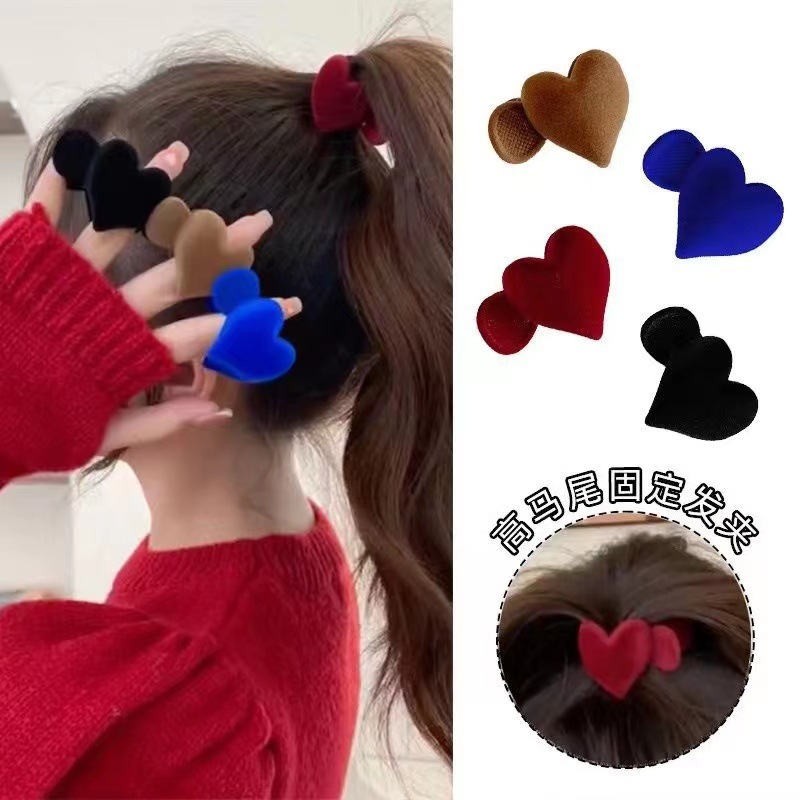 Heart-Shaped Flocked High Ponytail Claw Clip Goddess Anti-Collapse Ponytail Holder Trendy High-End Hairpin Accessory Hair Ornament