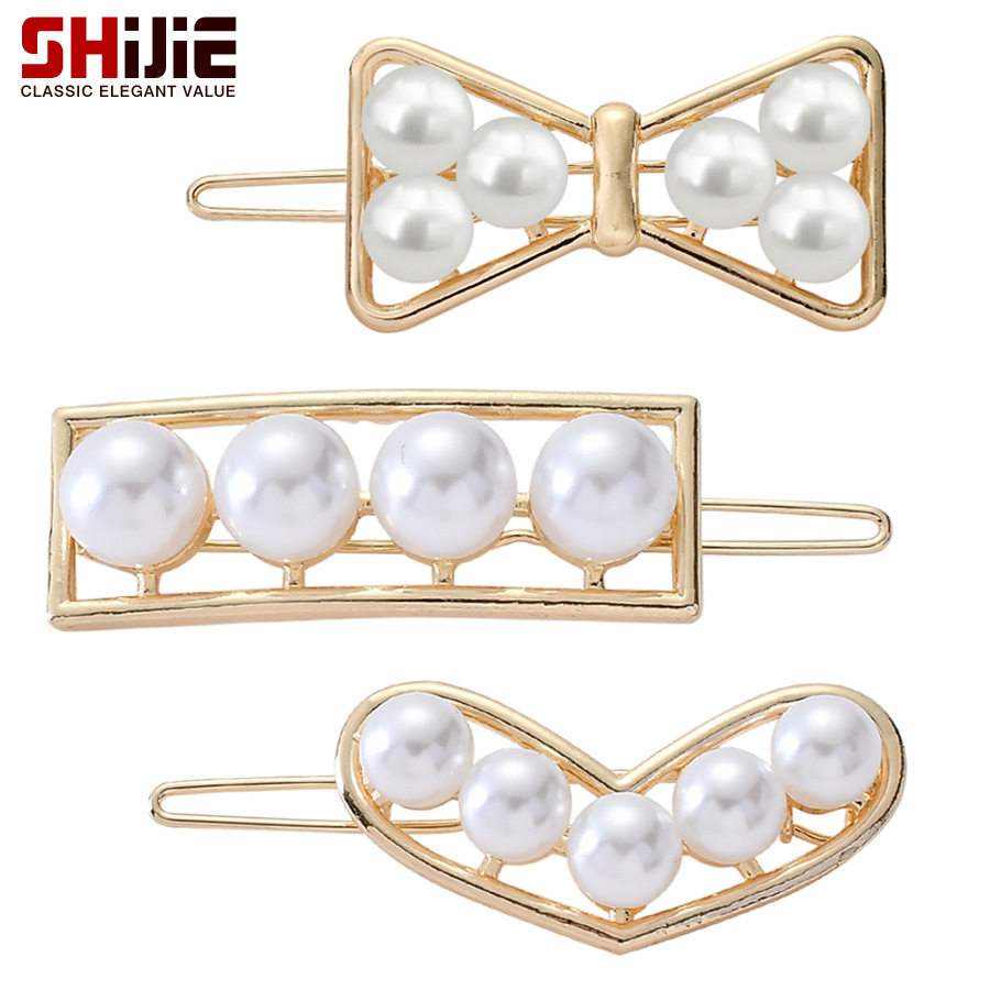 Korean-style Cute Goddess Hairpin Golden Hollow Square Heart Bow Internet Popular Pearl Hairpin Side Clip Head Buckle