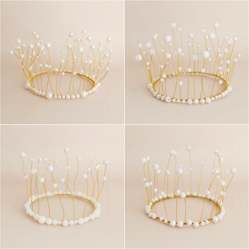 Crown Cake Decoration Ornaments White Pearl Seagrass Crown Goddess Birthday Cake Decoration Accessories Pearl Crown