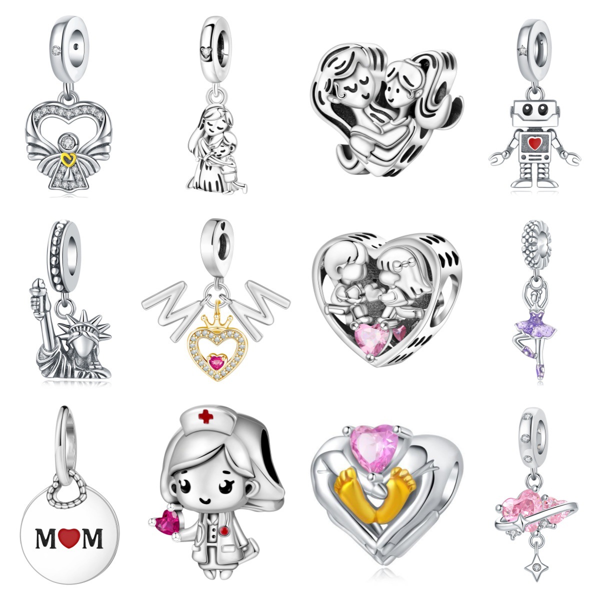 Love Mom Mother and Daughter Nurse Charm Beads DIY Jewelry Bracelet Accessories Copper Silver-Plated Export Hot Style