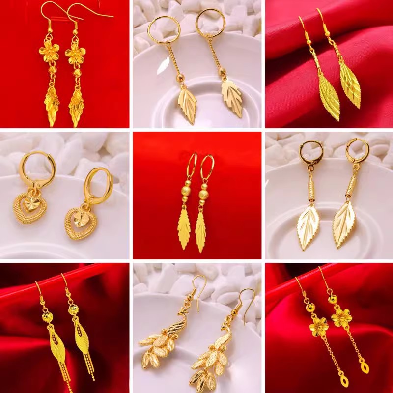 Vietnamese Sand Gold Earrings Women's Ear Wire Earrings Peacock Phoenix Transfer Beads Leaf Tassel Crown Earrings That Will Not Fade for a Long Time
