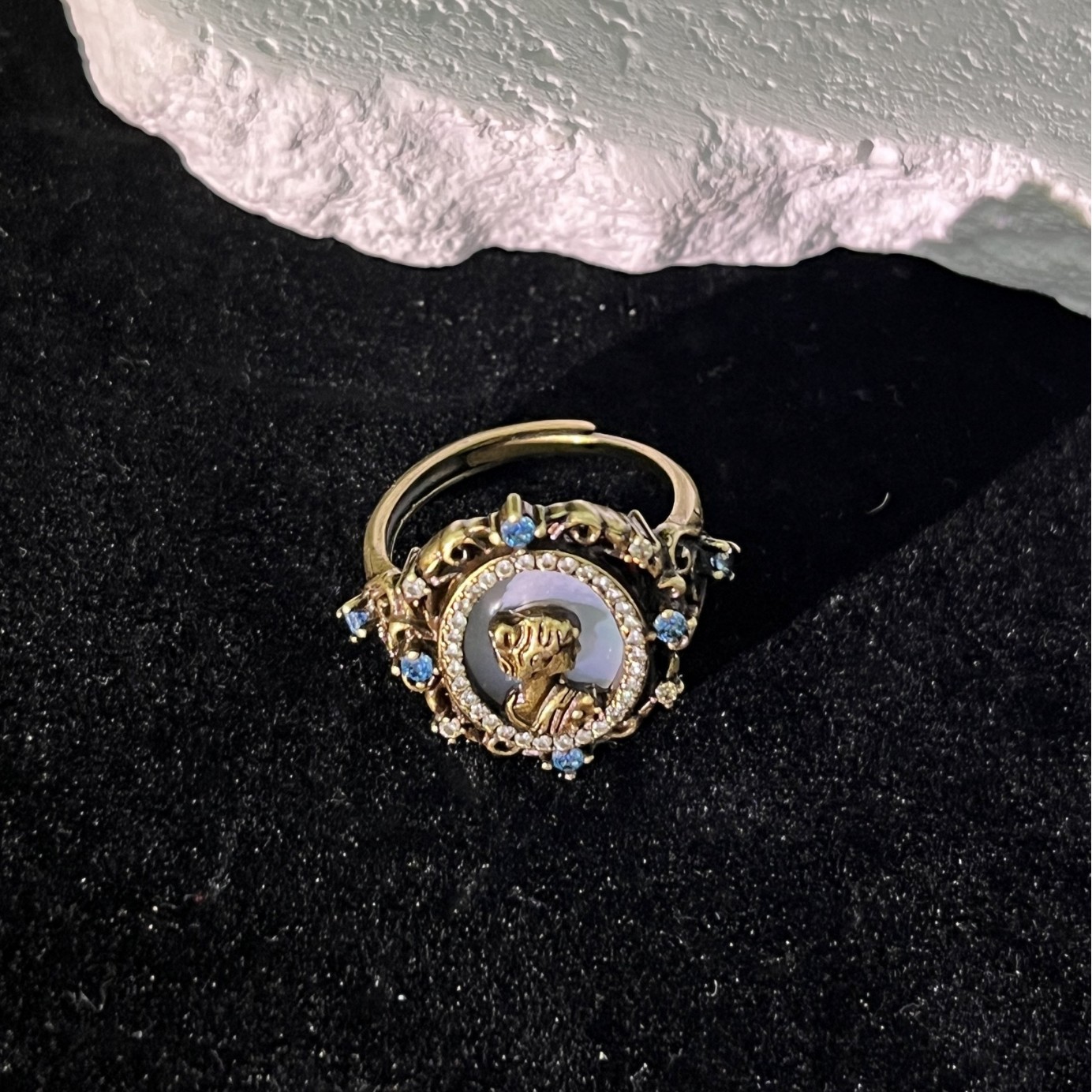 New Baroque Goddess Retro Ring White Shell Carving Goddess Silhouette Luxury Romantic Palace Classical Elegant Goddess