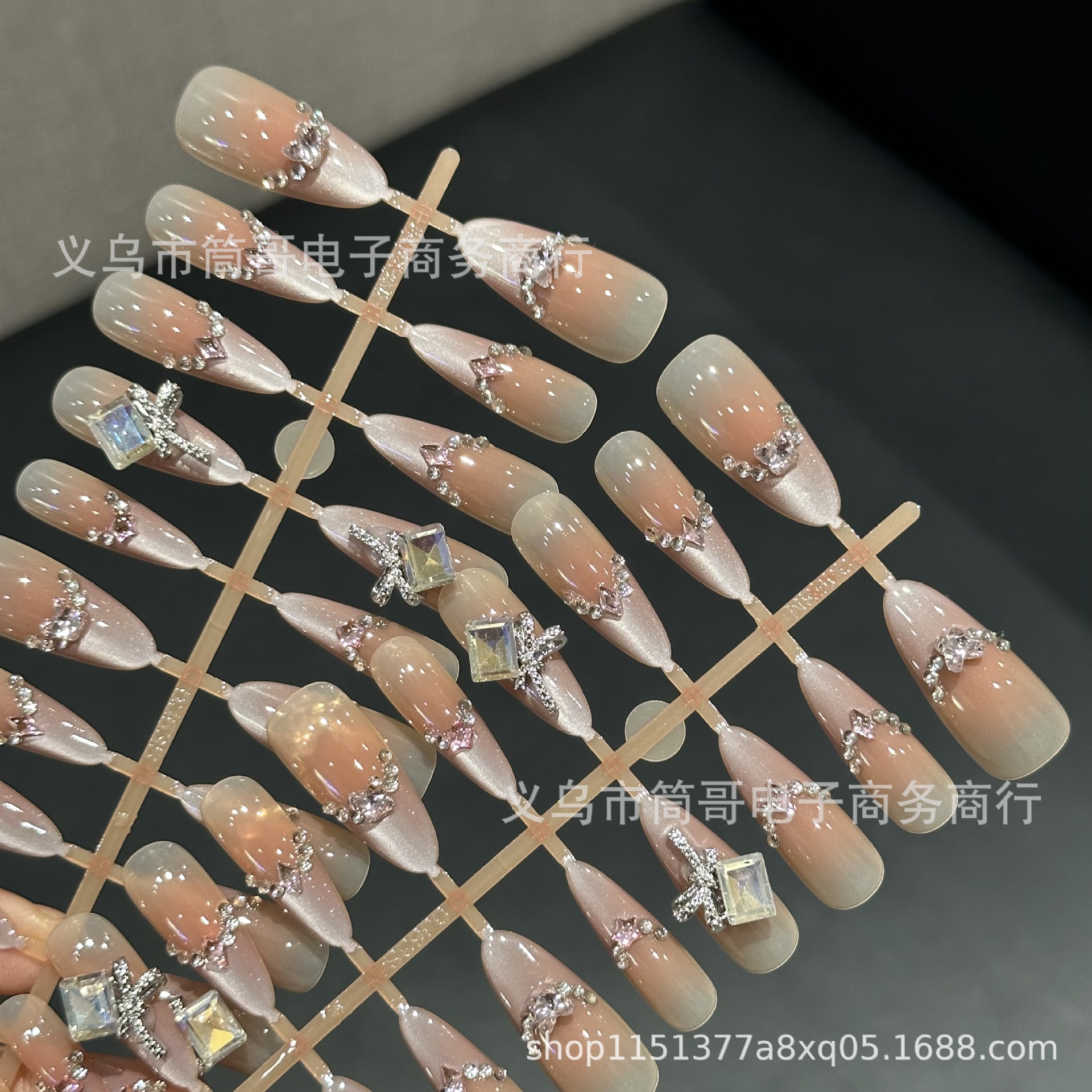 Cat's Eye French Broken Diamond Bow Wear Armor New Semi-handmade Manicure Fake Nail Patch Finished Flash Wholesale