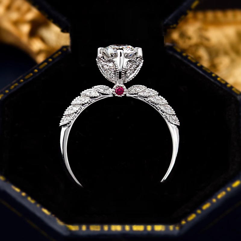 Imitation Moissanite Wedding Diamond Ring 2 karat Goddess Wing Wedding Clothes Light Luxury Red Treasure Holding Flower Order Wedding Ring