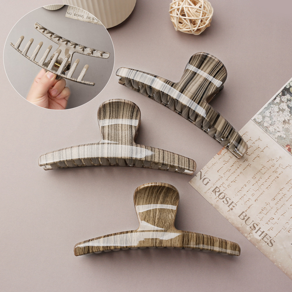 Popular Large Shark Clip Headwear Horizontal Wood Grain Hairpin on the Back of the Head, Elegant Goddess High-End Hairpin