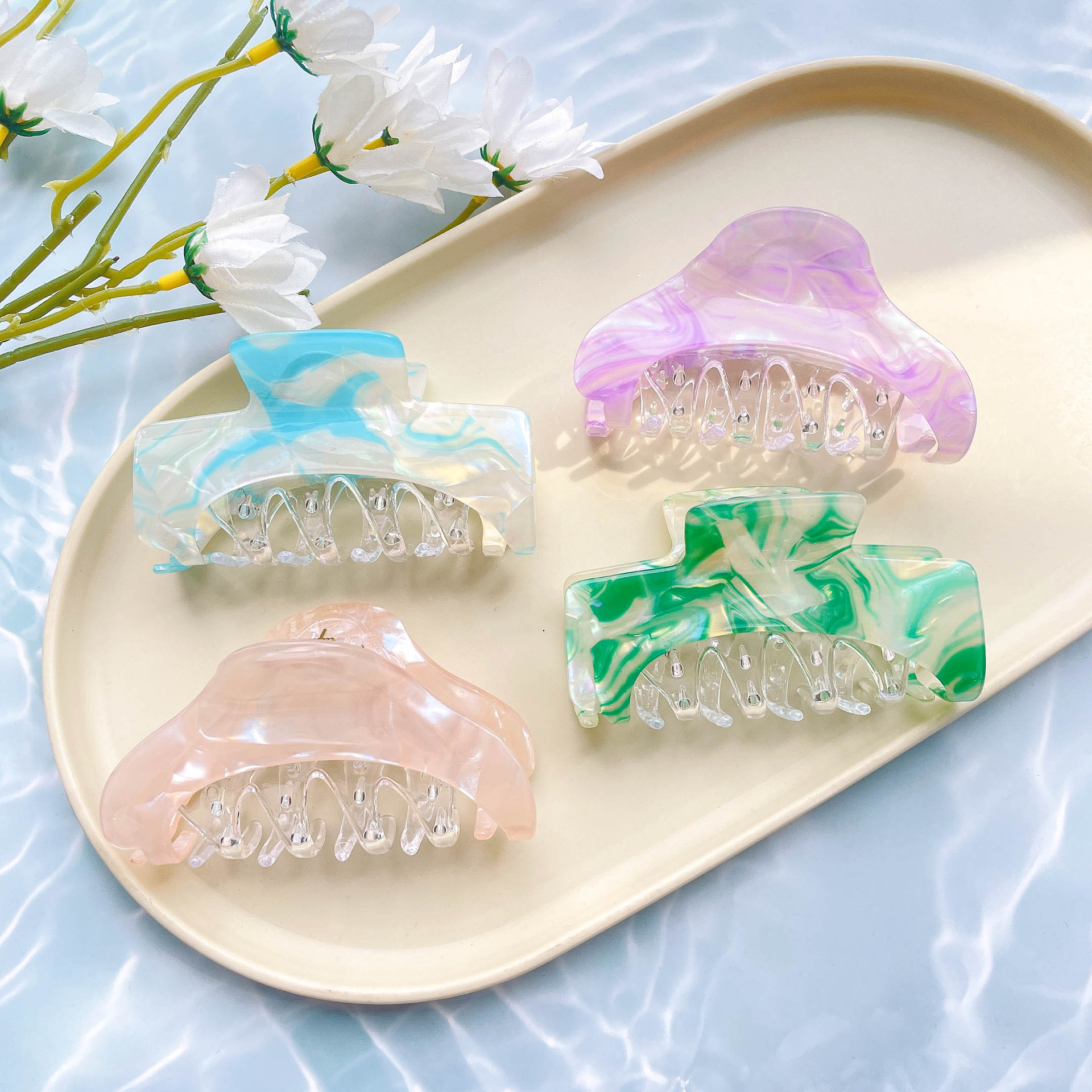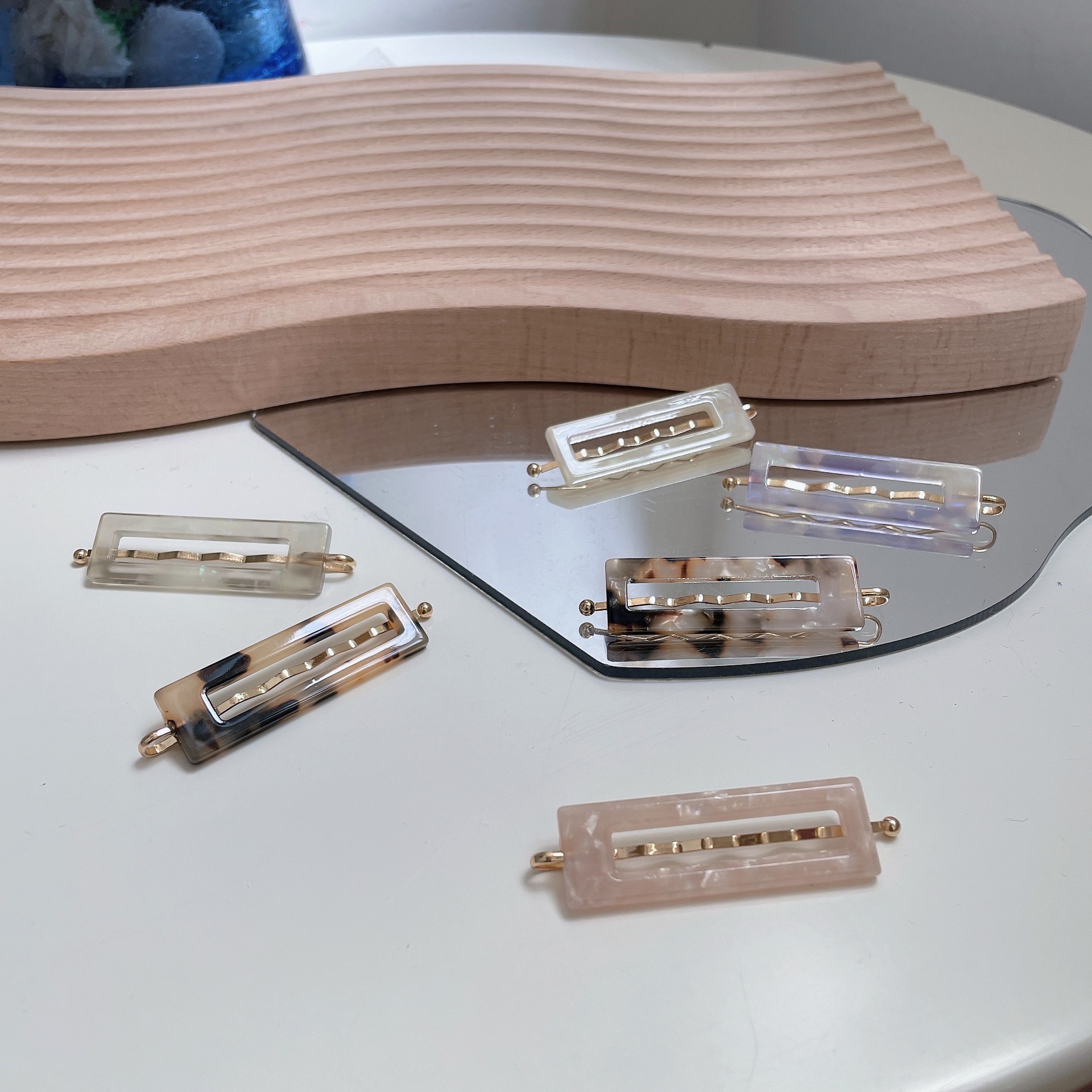 Japanese and Korean new amber hair accessories acetic acid seamless side clip forehead bangs clip geometric goddess makeup clip wholesale