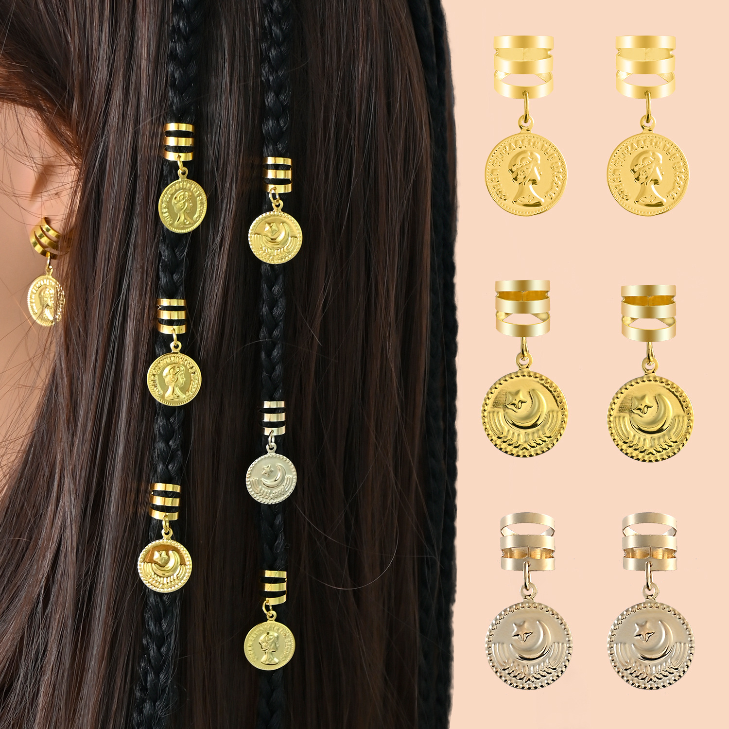Retro Elegant Alloy Braid Hair Accessories Cross-border European and American Goddess Head Moon Star Hairpin Wholesale