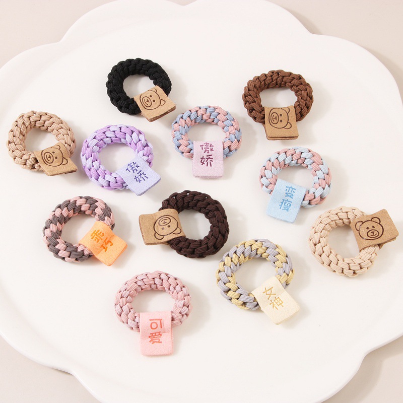Korean version of cartoon bear labeling hair rope contrasting color woven hair band hair rope high elasticity hair does not hurt hair rubber band