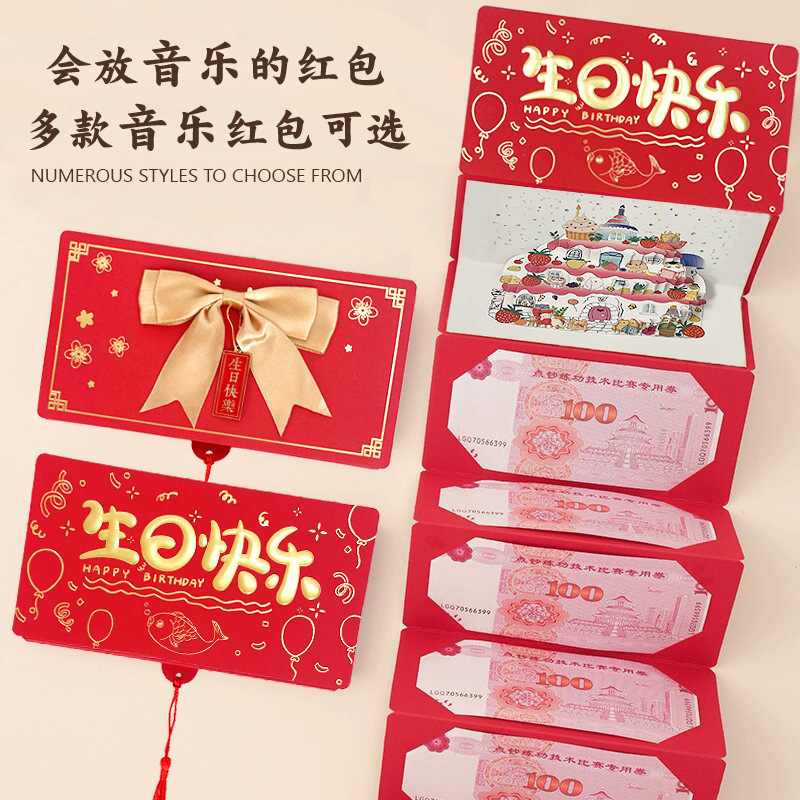 New Happy Birthday Three-Dimensional Cake Folding Red Envelope Ritual Creative Singing Red Envelope Gift