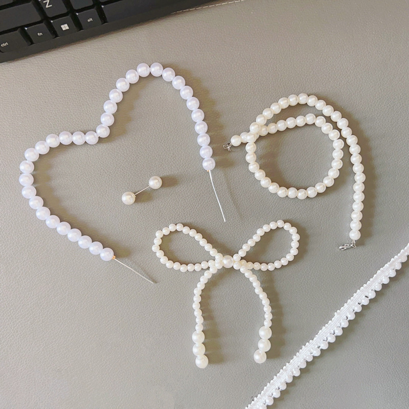 Internet Celebrity Pearl Bow Internet Celebrity Goddess Cake Decoration Pearl Heart Insert Pearl Chain Drop Shipping Free Shipping