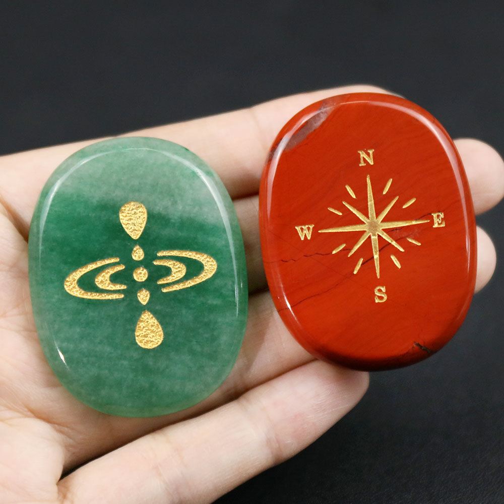 D151 Natural Pink Crystal Palm Power Engraved Inspirational Gemstone Oval English Encouragement and Worry Relief Carving Thumb Stone