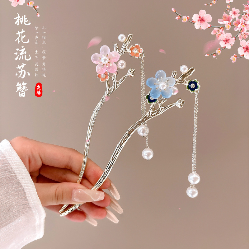Ancient style tassel hairpin goddess elegant high sense updo hairpin new Chinese style flower bamboo knot chopsticks step shake hair accessories