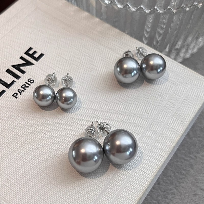 【Autumn/Winter Collection】Really Beautiful Gray Pearl Stud Earrings for Women, 925 Silver, Elegant Small Light Bulb Design, Light Luxury, Niche Style