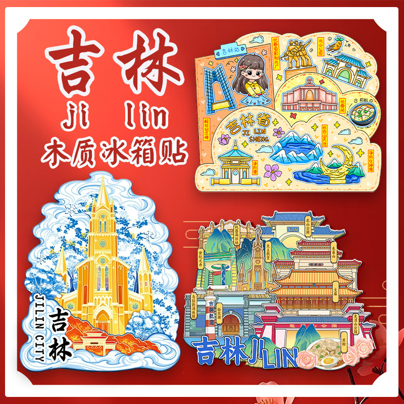 Jilin Wusong Church Wooden Refrigerator Magnet Beishan Park Jingyue Goddess Statue Tourism Cultural and Creative National Trend Souvenir