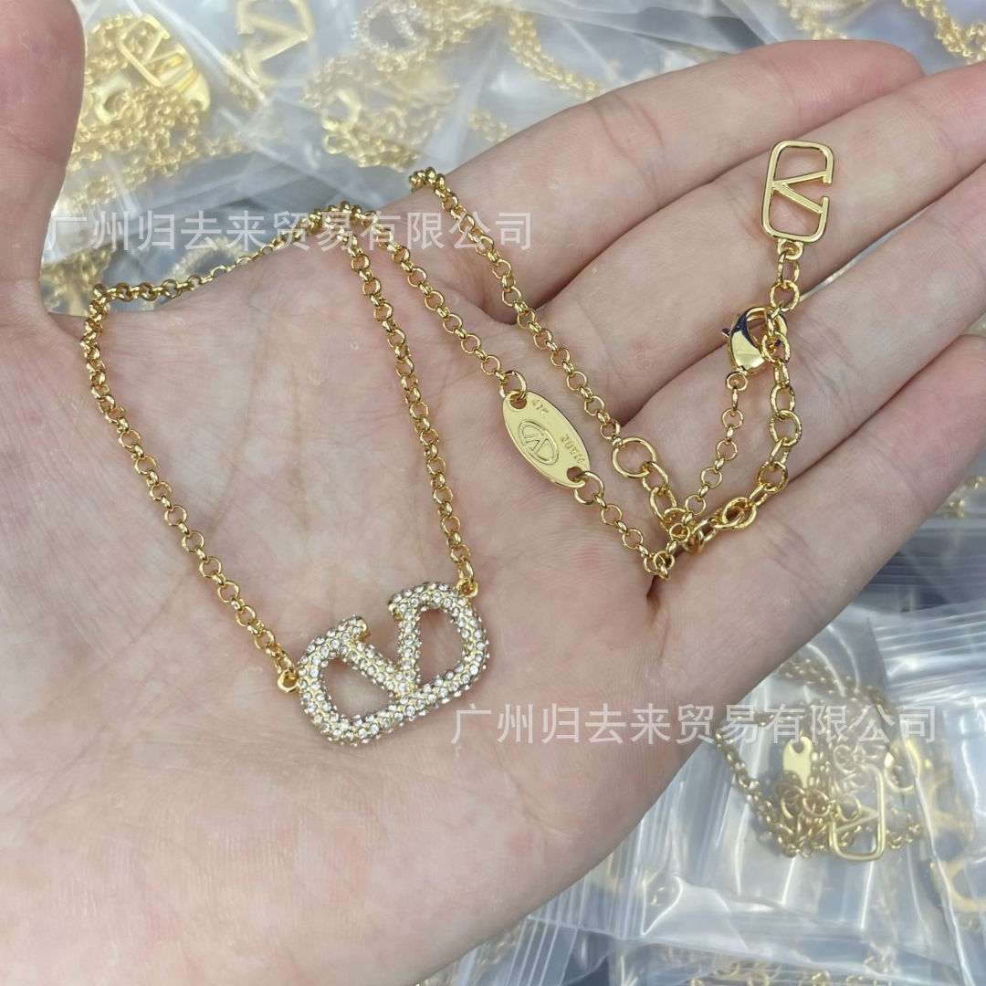 Factory Real Shot of Valentine's Letter V Full Diamond Gold Set Necklace Women's Accessible Luxury Niche Diamond Clavicle Chain
