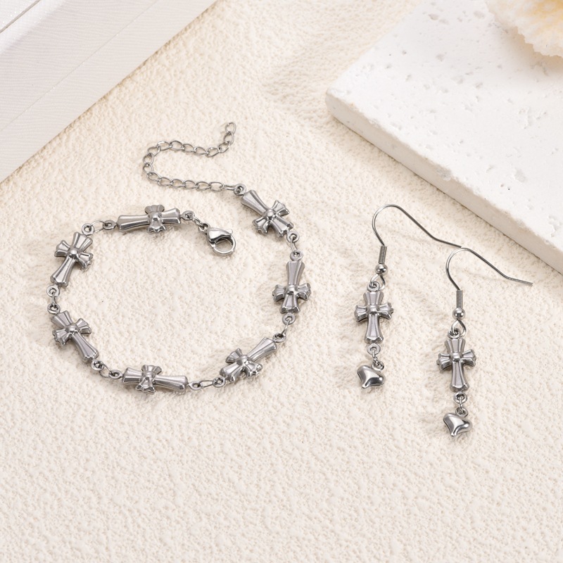 European and American Hot-Selling Titanium Steel Cross Necklace Bracelet Earrings Three-Piece Set Wholesale 18K Real Gold Fashionable Versatile Jewelry