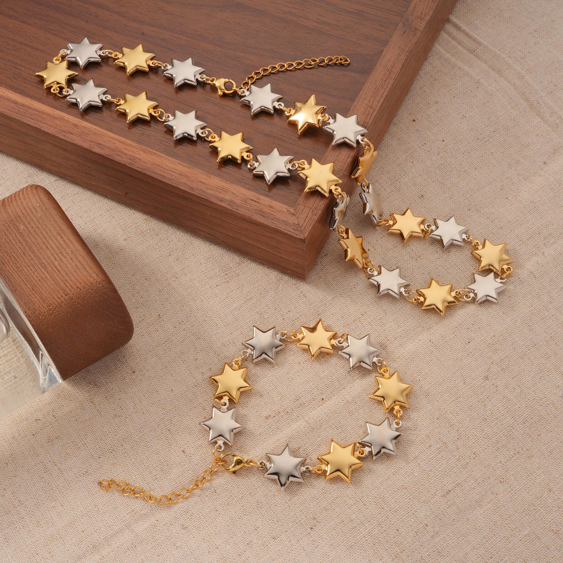 In-Stock Japanese and Korean Light Luxury Style Stainless Steel Jewelry Accessories Women's Chain Pentagram Stainless Steel Necklace Bracelet Set