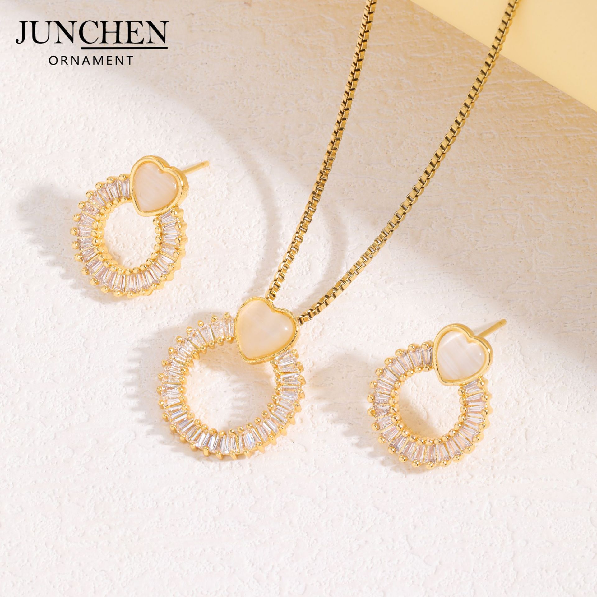 Cross-border European and American Necklace 18K Real Gold Electroplated Light Luxury Love Heart Cat's Eye Stone Jewelry High Color Retain Earrings Jewelry suit