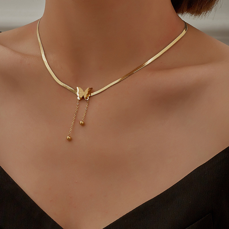 Frosted Butterfly Pendant Exquisite Tassel Clavicle Bracelet suit European and American Jewelry Niche Entry Luxury Stainless Steel Real Gold