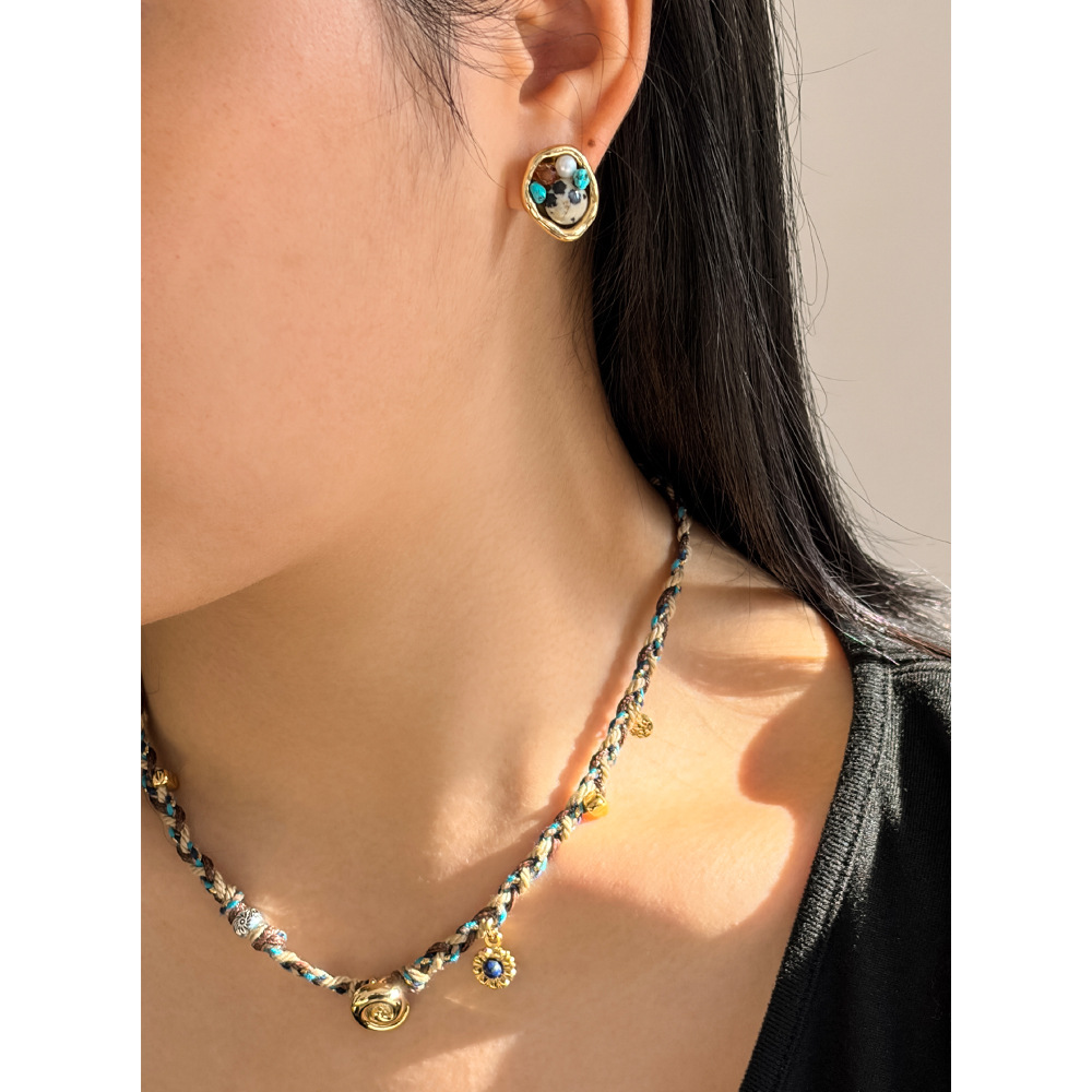 New Retro Blue Rope Hand-Woven Rope Necklace Niche Design Ethnic Style High-End Clavicle Chain Earring Set