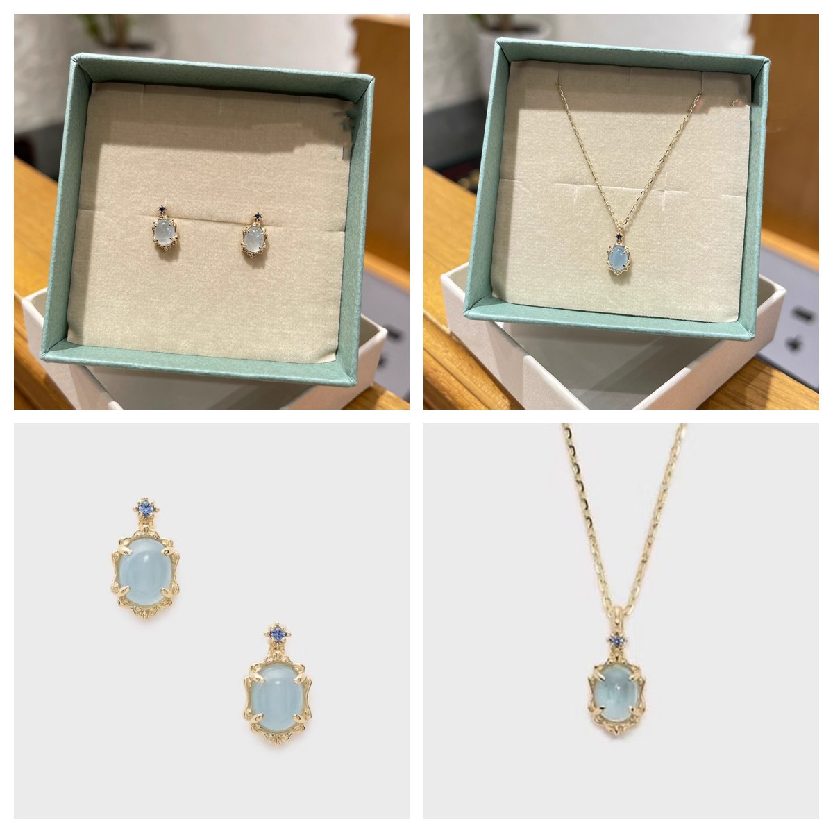 Japanese-Style Light Luxury Swan Outline Oval Natural Aquamarine S925 Silver Plated 10K Gold Necklace and Earring Set