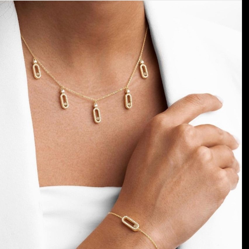 Cross-Border Hot Selling High-End Design Full Diamond Sliding Pendant Light Luxury Luxury Classic Versatile Necklace Set Decoration