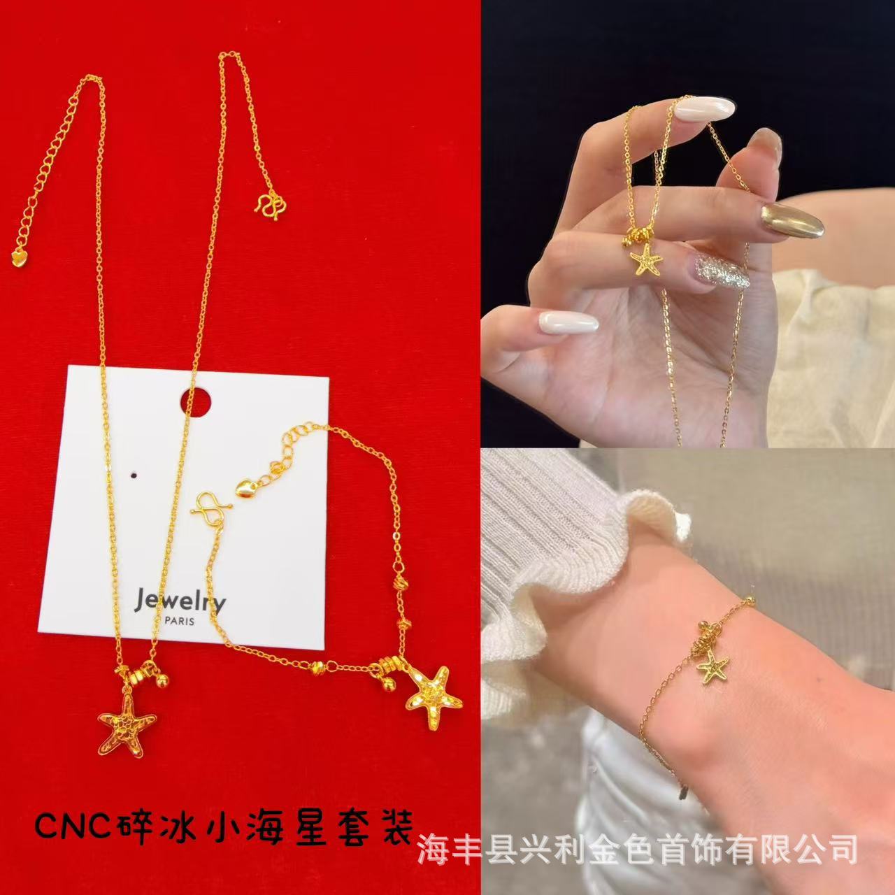 Xiaohongshu's Popular Crushed Ice Starfish Bracelet and Necklace Set, Light Luxury, Versatile and High-End Sweater Chain Necklace