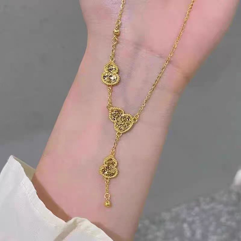 European and American Jewelry Niche Entry Luxury Stainless Steel True Gold Frosted Butterfly Pendant Exquisite Tassel Clavicle Chain Bracelet suit