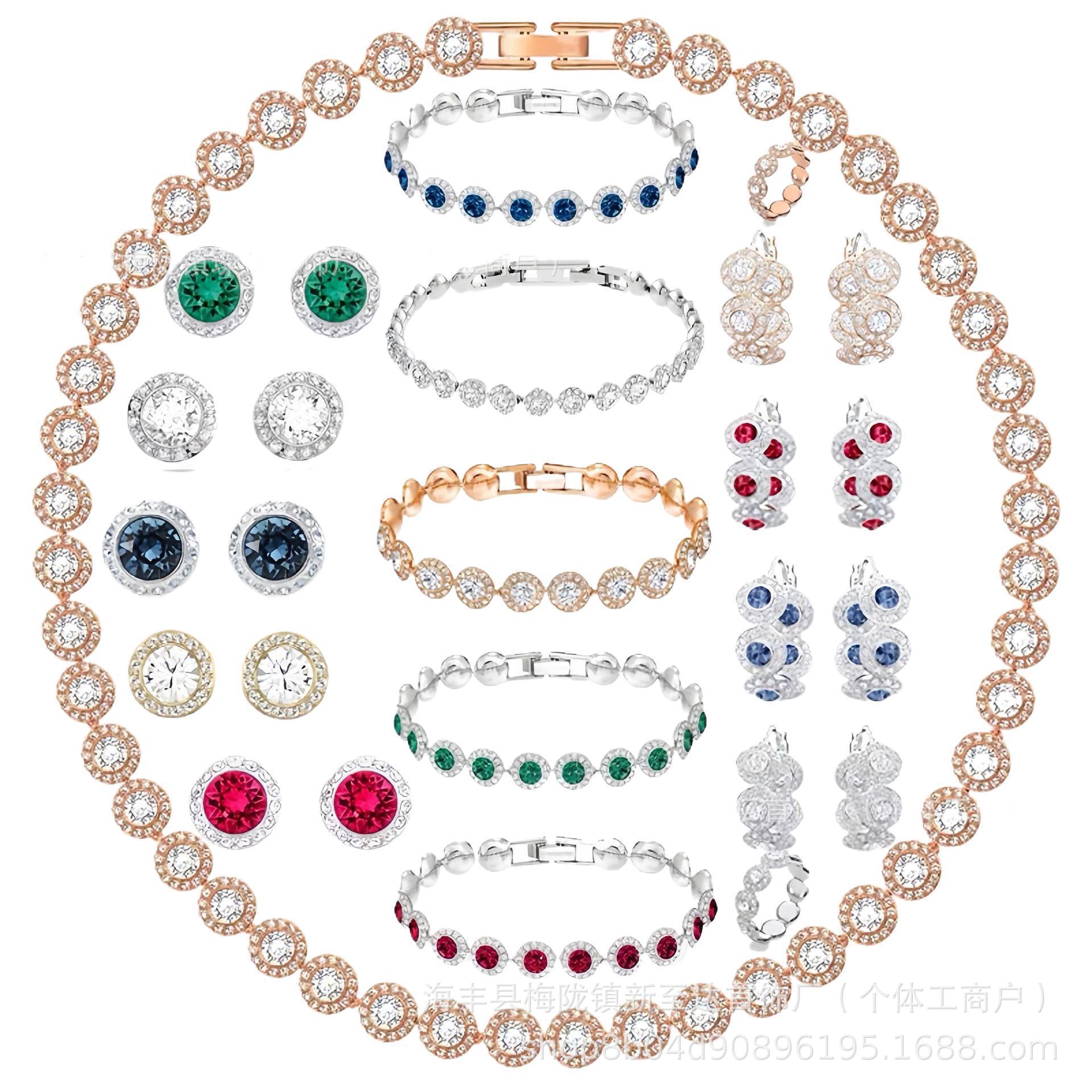 Shi Jia Rome Jewelry Una Series Necklace suit Crystal Inlaid Round Cut Dazzling Charm Bracelet Niche