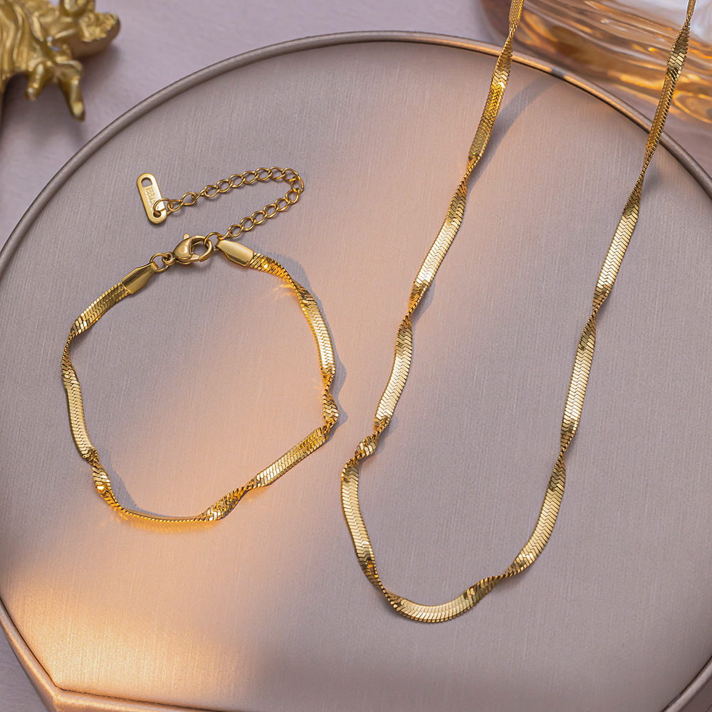 Europe and the United States INS net red 18K real gold plated stainless steel twist blade snake bone chain titanium steel necklace women's fashion suit