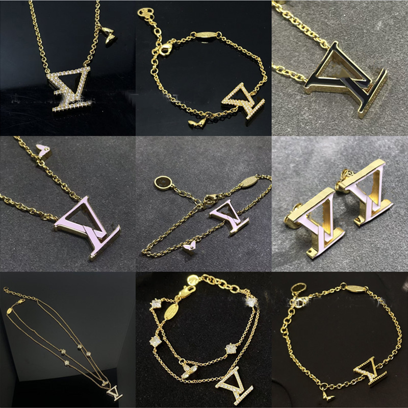 High Version Flower Full Diamond V Letter Necklace Bracelet Earrings Exquisite Set European and American Simple Multi-Flower Clavicle Chain Wholesale