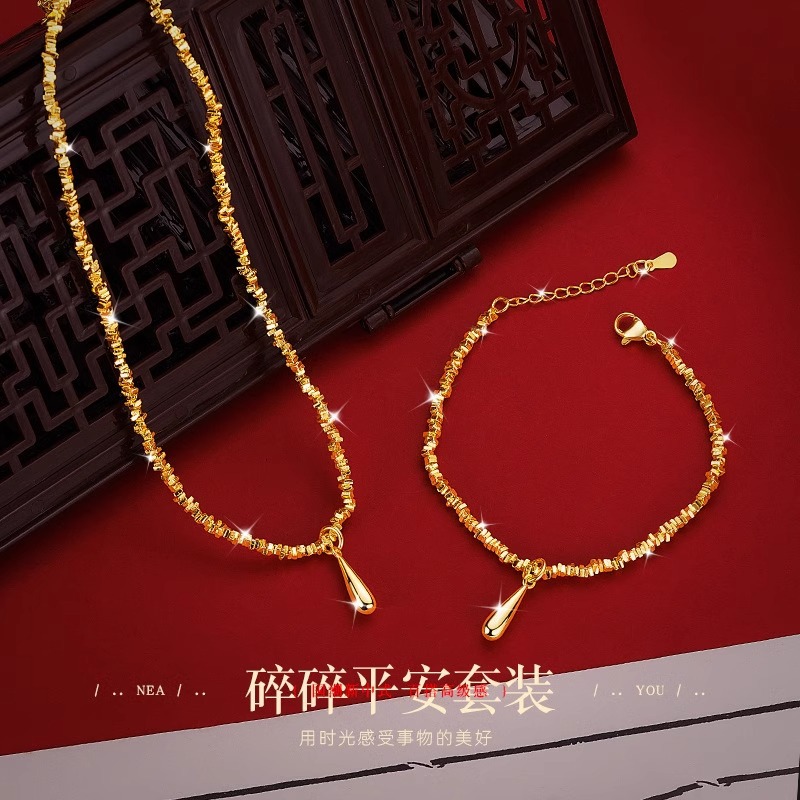 2025 New Style Broken Gold Water Drop Bracelet Women's Light Luxury Flash High-Level Broken Silver Necklace for Gift suit
