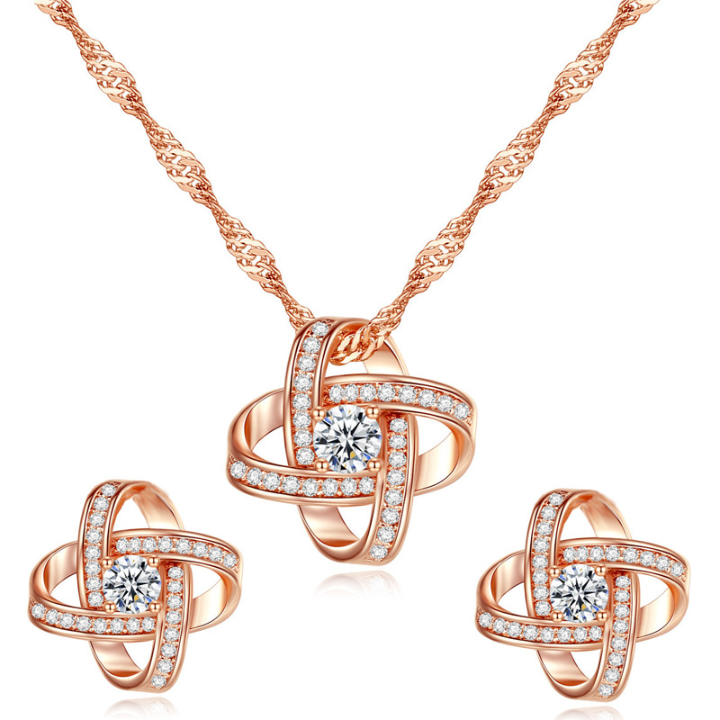 Rose gold plated eternal star necklace stud earrings suit Korean shiny fashion jewelry suit