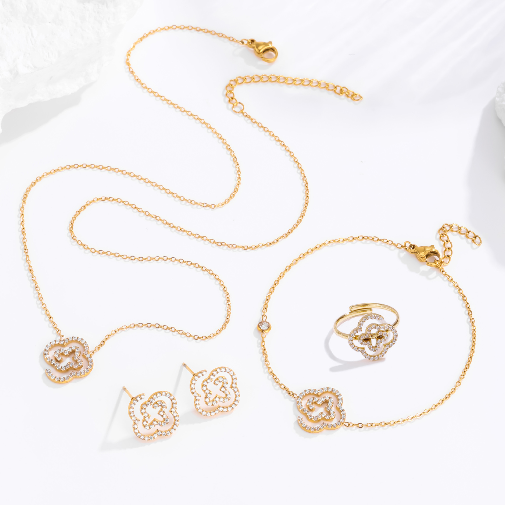 Cross-border e-commerce hot-selling fashion four-leaf clover necklace earring set inlaid zircon ins niche design jewelry
