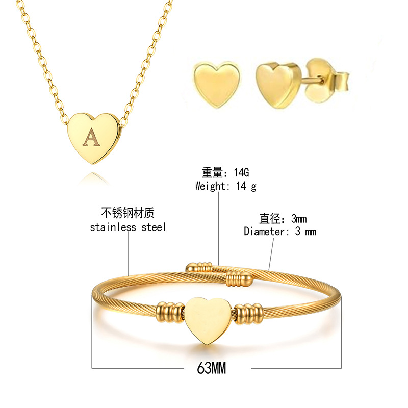 Roman Numeral Titanium Steel 18K Real Gold Heart Necklace Open Wire Bracelet Set for Women High-End