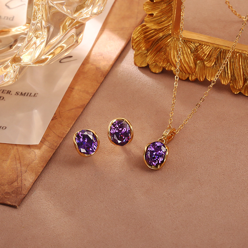 Tiktok Trending Purple Crystal Zircon Necklace High-End Fashion Elegant Collarbone Chain Internet Celebrity Temperament Fashion Set