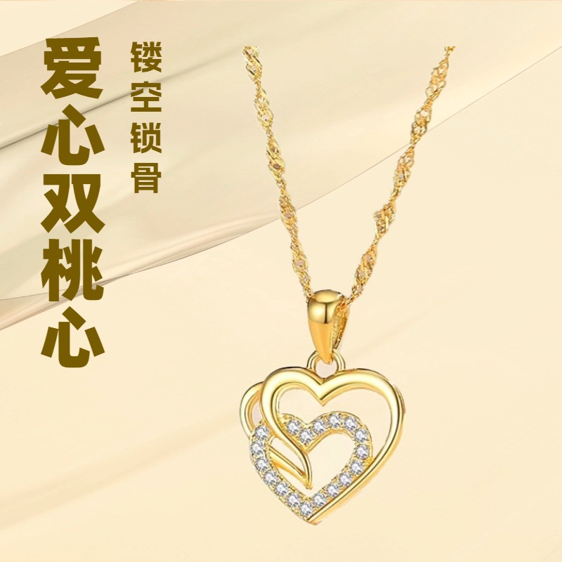 Cross-Border Hot-Selling European and American Style Heart Hollow Pendant Necklace for Women, Light Luxury Clavicle Chain and Earring Set, Wholesale from Manufacturer