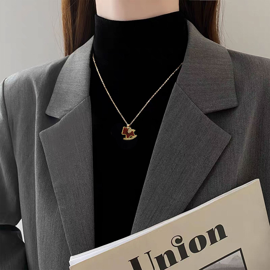 18K Real Gold Electroplated Silver Needle Zircon Pony Earrings Necklace Accessible Luxury High-End Earrings Niche Versatile Set for Women