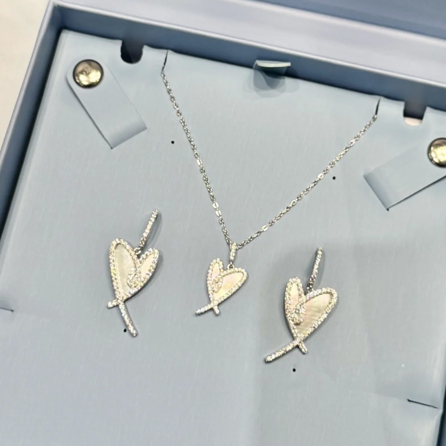 [New Product] Hefang Jewelry Heart-Pounding Necklace Earrings Set Decoration Light Luxury Elegant Birthday Gift
