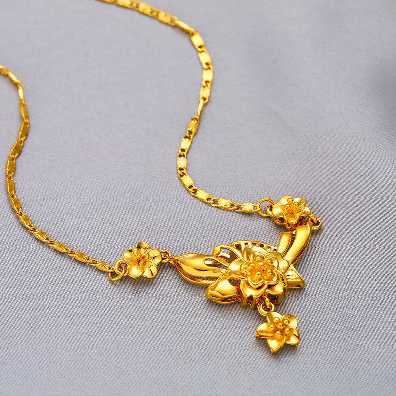 2021 New Vietnam sand flower brass plated gold jewelry set sand gold necklace women Wedding Jewelry